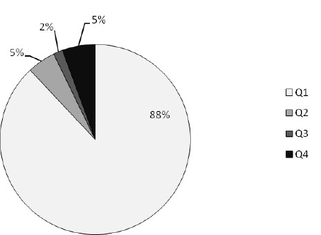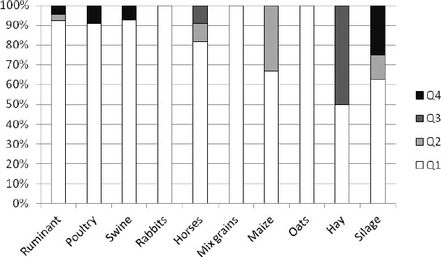 In general, 70% of the assessed feeds in Slovenia were classified in Q1, and 24% in Q2 while none of the assessed samples were classified as Q3. As unsound (Q4) 6% of samples were assessed (Fig. 4).
