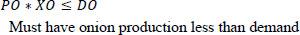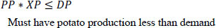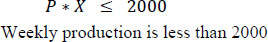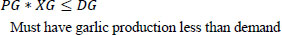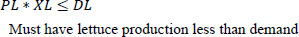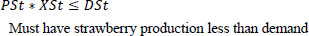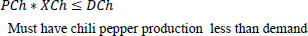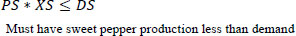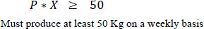 Equations 3 and 4 are related to production. Matrix P shows the weekly production of the plant in week J. X*P, in this case, represents the weekly production, which is assumed to be greater than a designated value of 50 Kg/week and less than the 2000 Kg/week. The 50 Kg ensures that there are sales and money in the system. However, 2000 Kg is the maximum that the farm should produce.