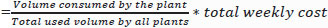 The other costs were allocated to the plants, including labor, in the same manner. The nutrition cost was major. The consumption per plant and the cost of these nutrients were obtained from agriculture experts.