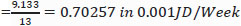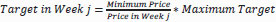 The actual weekly target varies according to the price. The demand is assumed to shrink at higher prices according to the following equation: