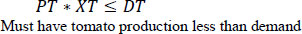 DTj: Anticipated demand for tomato plants produce in kg in week j