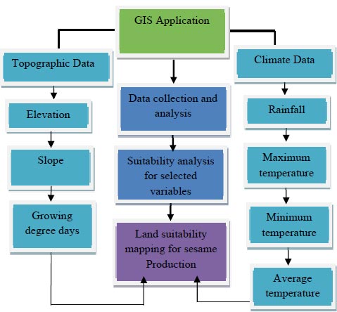 Climate is the most important factor in determining crop production systems in Ethiopia. However, land suitability evaluation using climate variables for specific crops has been barely conducted to demonstrate the suitability of a location for the growth and yield of the crop. This study was, therefore, conducted to analyze land suitability evaluation for sesame production using agro-climatic variables by employing a multi-criteria approach.