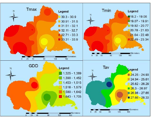 Despite their determinant effects on crop growth and yield, climate variables have been rarely considered for land and agroecological suitability evaluation and mapping. Under the increasing climate change impacts on agriculture, land suitability analysis on soil-climate-landscape [18] is essential for improved climate change adaptation and crop management strategies. It has also been stated that agro-climatic indices are potential indicators of climate change's impact on crop growth [19]. Understanding the likely impacts of climate change on agricultural production is of paramount importance for developing long-term policy [2]. The thermal regime is a basic climatic parameter used to define a specific agroecological zone, with a temperature interval of 5ºC to 2.5°> C [9].