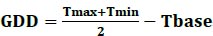 Where, Tmax is the daily maximum temperature, Tmin is the daily minimum temperature, and Tbase is the base temperature of the crop. The base temperatures for tropical crops are higher, and the Tbase for sesame was considered as 11°> C. Land suitability evaluation was carried out based on GDD in nine observation stations in the western and northwestern zones of Tigray, where sesame is commonly cultivated as a major crop.