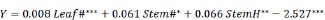 In this study, multiple regression analysis was used to predict fruit yield by considering leaf number, stem number, and stem height as the three important independent variables, which are presented in the following equation (Eq. 1):