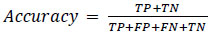One parameter used to assess classification models is accuracy. Roughly speaking, accuracy is the percentage of correct predictions our model made. According to formal definitions, accuracy is the proportion of accurately labelled images to all samples [32, 33]. The Eq. (5) shows the mathematical representation of accuracy.