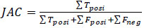 Eq. (6) uses the “Jaccard Index (JAC)” to calculate the intersection spatial overlap divided by the union size of two label sets.