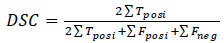 The spatial overlap between two binary pictures is measured by the “Dice Similarity Coefficient (DSC),” whose values range from zero (non-overlapped) to one (perfect overlapped). Eq. (7) yields the segmentation result and the ground truth, or DSC values.