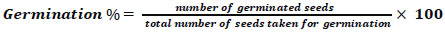 The percentage of seed germination (Eq. 1) was determined on the 21st day of germination, when the last individual seeds germinated, later, the seeds did not germinate.