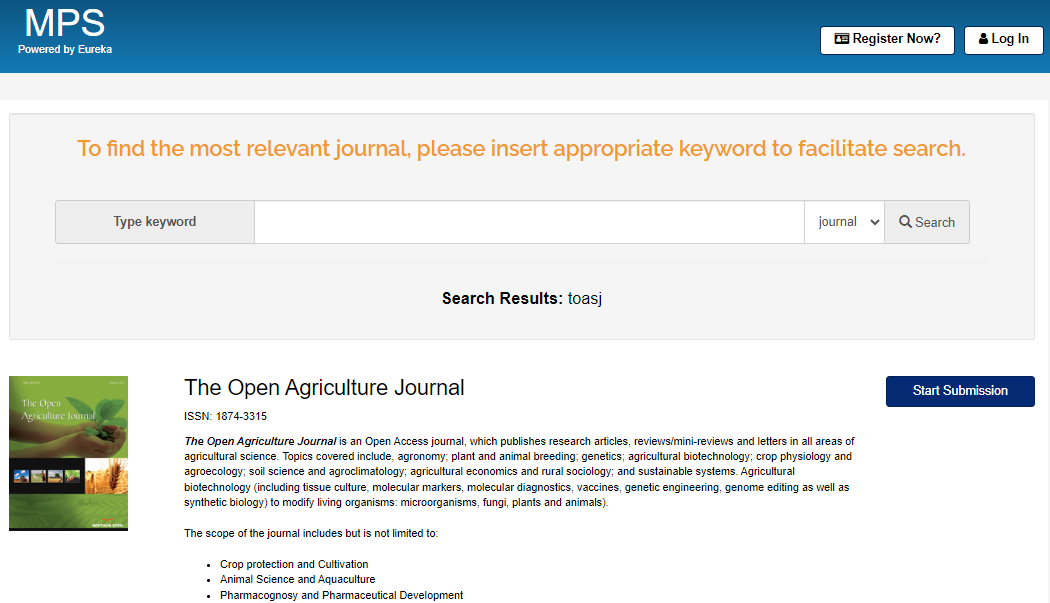 The Manuscript Processing System (MPS) is a web-based manuscript submission and tracking system developed by Bentham Open Publishers for efficient, fast and cost-effective processing of submitted manuscripts. MPS has been designed with the objective to ensure step-by-step online processing and tracking of manuscripts for authors, editors and the publisher from submission to acceptance and final reproduction.